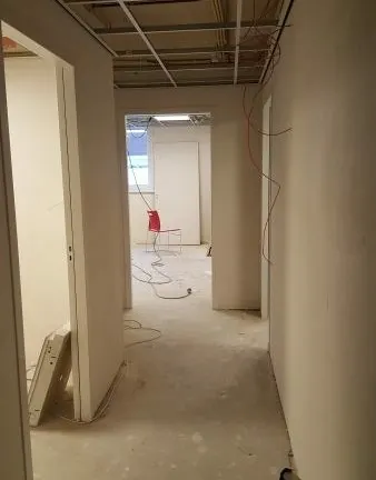 Afgelopen week zijn de gietvloeren aangebracht en deze week gaat de interieurbouwer de pantry’s en de vaste kasten plaatsen zodat de ruimtes in week 52 in gebruik genomen kunnen worden.