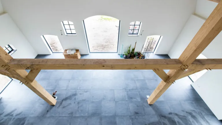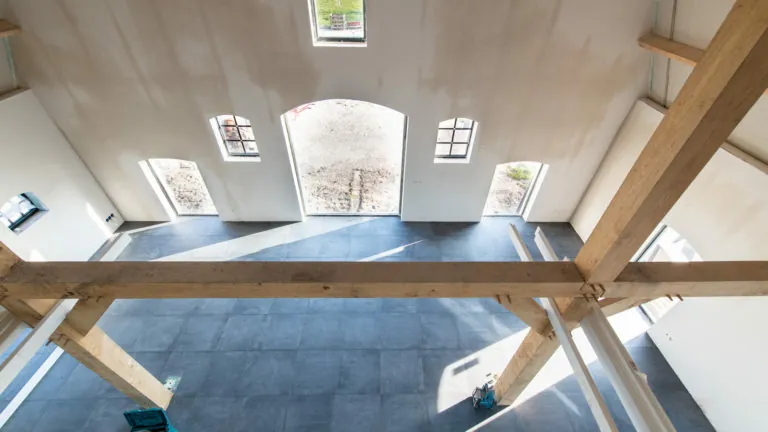Vrij recent heeft de BBAN de vernieuwbouw van een woonboerderij in Midden-Nederland opgeleverd. Het deel, daar waar vroeger de koeien gestald stonden, is geheel vernieuwd waarbij authentieke elementen zoals eiken gebintconstructies en stalramen met hulp van onze ketenpartners weer nieuw zijn aangebracht. De originele stalen stalramen zijn nagemaakt in hout waarbij de profilering van de stijlen en dorpels zo slank is gemaakt dat het dezelfde uitstraling als staal heeft. Het voorhuis verkeerde qua constructie in een betere staat maar is wel geheel gerenoveerd inclusief een nieuwe rieten kap, 2 badkamers en een toilet.