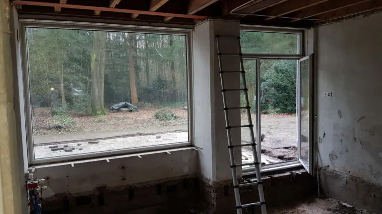 Voor een particuliere opdrachtgever begeleid de BBAN Groep momenteel een grote verbouwing van een vrijstaande semi-bungalow in het midden van het land. De woning is lommerrijk gelegen op een groot perceel en heeft een mooie achtertuin. Samen met onze architecte Erika Lopulalan is in nauw overleg met opdrachtgever een ontwerp gemaakt met veel glas waardoor zowel op de verdieping als op de begane grond mooi uitzicht op de achtertuin is. Om het zicht op de tuin zo min mogelijk te beperken is gekozen voor zwart, matte stalen gevelpuien met ranke profilering van de stijlen. De woning gaat er ook qua volume flink op vooruit door een uitbouw van 55 m2 en een heel breed dakkapel van bijna 12 meter breed.